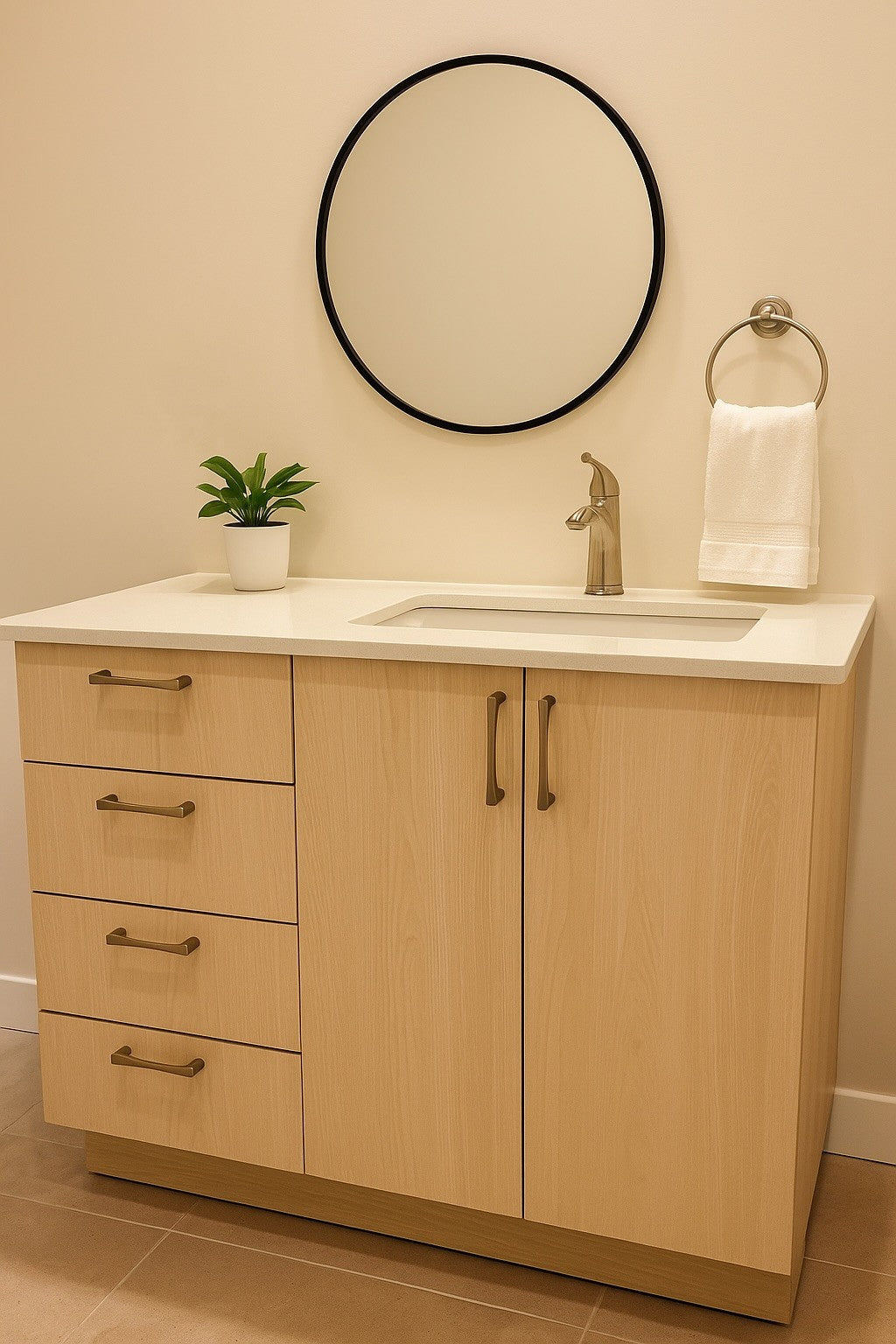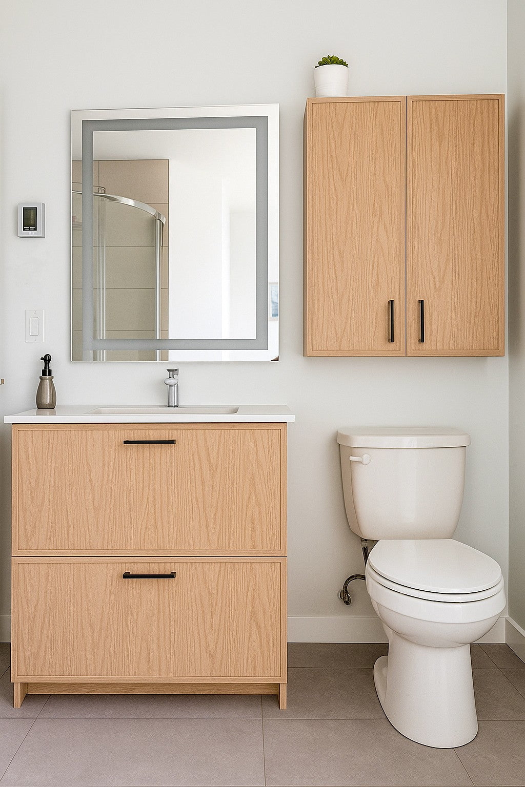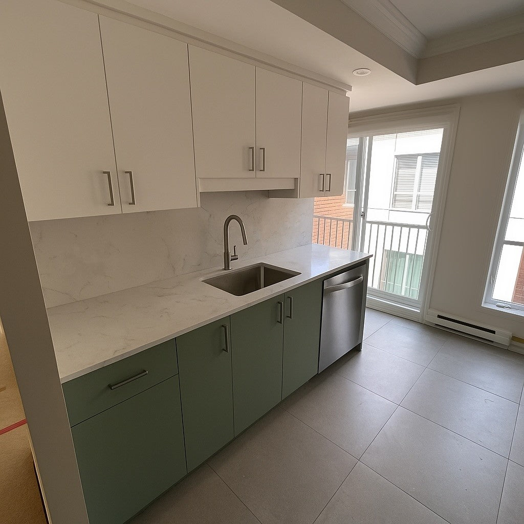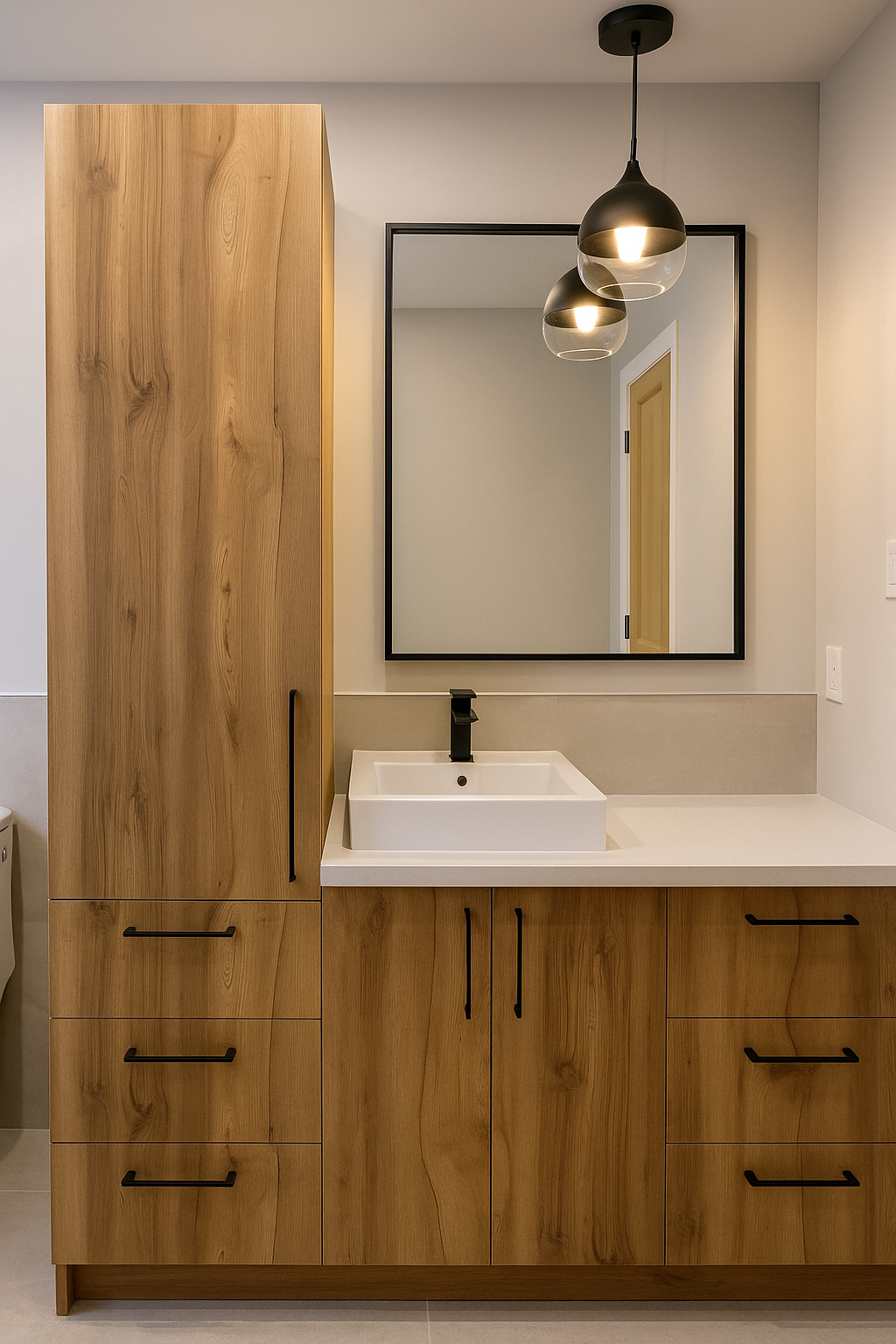 Armoires suspendues conçues sur mesure pour maximiser l’espace et offrir un style épuré.